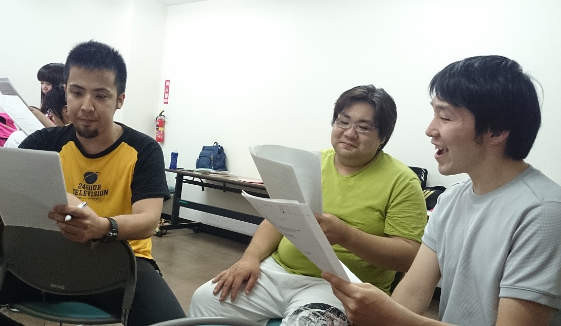 セレクションシリーズ2 2015/08/04 稽古場ブログss2その10 稽古場ブログもいよいよ2桁! 本日も元気に更新していきます! 【perfect blue】より一幕 物語の主を担う3人 茅野 間山 青葉です。 3人の息の合った練習風景は頭の中に映像が浮かんでくるかのように真に迫ったものを感じますね。 誰がどの役なのかはまた近日ご紹介していきたいと思います。 どんな声で、どんな印象なのか、ぜひ会場に足を運んで頂き拝見していってくださいね! ところで青葉さん。まるで足が無いかのような写真ですが…浮いてるんですかね( ゚Д゚) 余談ではありますが、私kazuは今回、パンドラメンバーを影に日向に、支えさせて頂いていますが台詞合わせのお手伝いをすることも…。 端役であったり、主役であったり…。女性役であったり…(´・ω・`) 思わず稽古場で私のお手伝いで笑いが出ることもしばしば(笑) 当日は舞台にこそ出ませんが、裏側で皆様にお会いできる事を心より楽しみにしていますね! それでは今回はこの辺で!また次回の更新をお楽しみに!