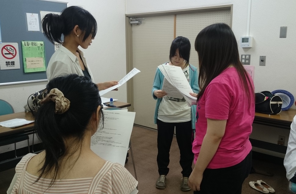 セレクションシリーズ2 2015/08/04 稽古場ブログss2その9 今週は毎日稽古!毎日アップです!どうもkazuです。毎日暑いですね。 稽古日数も段々と残り少なくなって来ましたがそれに伴い内容も濃くなっていっています。 本日はそれぞれ個別に別れての稽古がメインとなりました。 男子メンバーは【神女古潭】をメインとして… 濃いなぁ…(´・ω・`) 一方こちらの女子メンバーは【perfect blue】チームに分かれての稽古でした。 いやぁ…上と比べて華やかさが違いますね( ゚Д゚) 今回もゾノさんは一部の台詞の所で『怪しい事この上ない』 事になってしまいましたが、演出さんからは別シーンで「いいね!」を頂いていましたよ やったねゾノさん! 当日はゾノさんの活躍を是非期待して見に来てください! また本日衣装について意見が交換されました。 衣装を着ての写真撮影も間もなくとなるのかな? こちらにも期待して待って頂ければ幸いです! それでは本日はこの辺で。またの更新をお楽しみに!