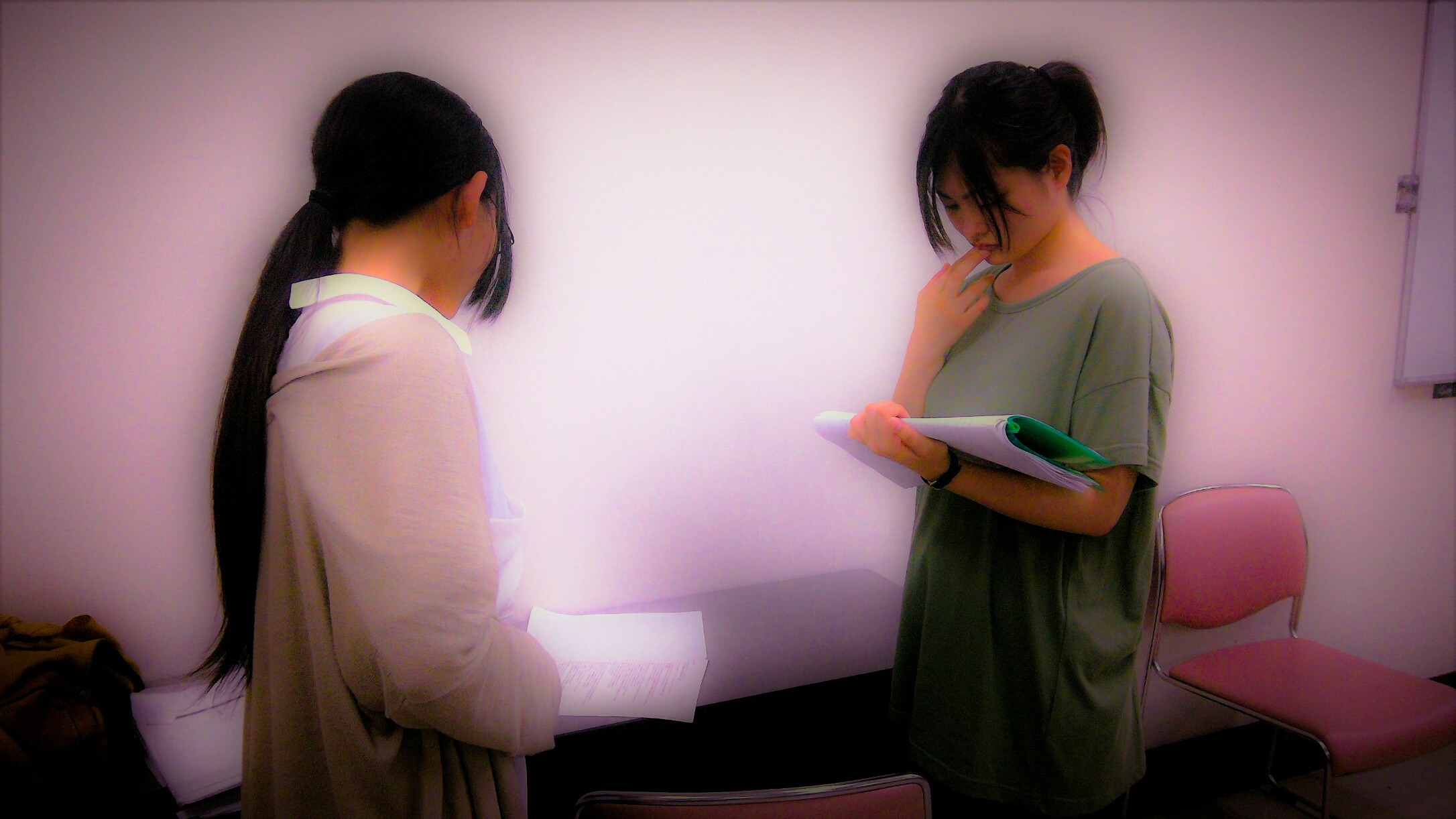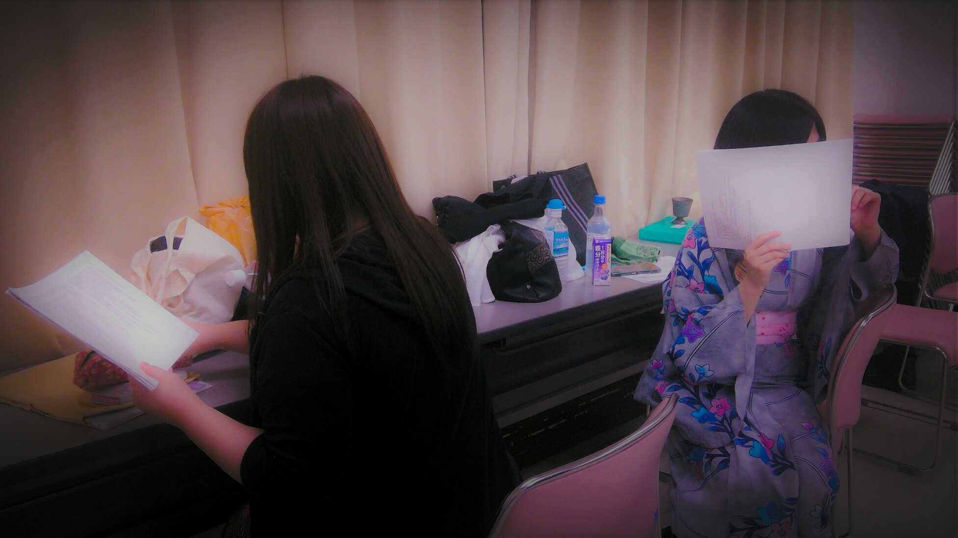 幻想推古 花鳥風月 2017/08/06 花鳥風月夜話 【シェルフのお仕事 その2】 失礼いたします。シェルフです。気がつけば、前回のご報告から、約一月もの時がたってしまっていました。こちらの世界にも馴染んできたのか、時の流れが早く感じるようになってまいりました。写真機にも、少しずつ慣れてきた気がいたします!今回は、お稽古の風景もしっかりとおさめてまいりました♪皆様の真剣なお姿、ご紹介いたします! 皆様、台本に向き合っておられました。今回の公演は、今までの公演と違い、本番当日は本を持たないのだとか…。そのためか、今までよりも緊張感のあるお稽古場となっている気がいたします。しかし、楽しいお稽古場である事に変わりはなく… おいしいお菓子がたくさんある事も変わりなく…♪ それがまた皆様の動力にもなっているようで… 少しずつ、お話も見えてきたようです。皆様にお届けする頃には、素敵な世界が出来上がっている事と思います!その日まで、もうしばらくお待ちを…。夏という、暑いこの季節。お帽子が少し役に立つもよう…。 皆様もどうぞ、体調を崩されませんよう。それでは皆様、またお会いしましょう。