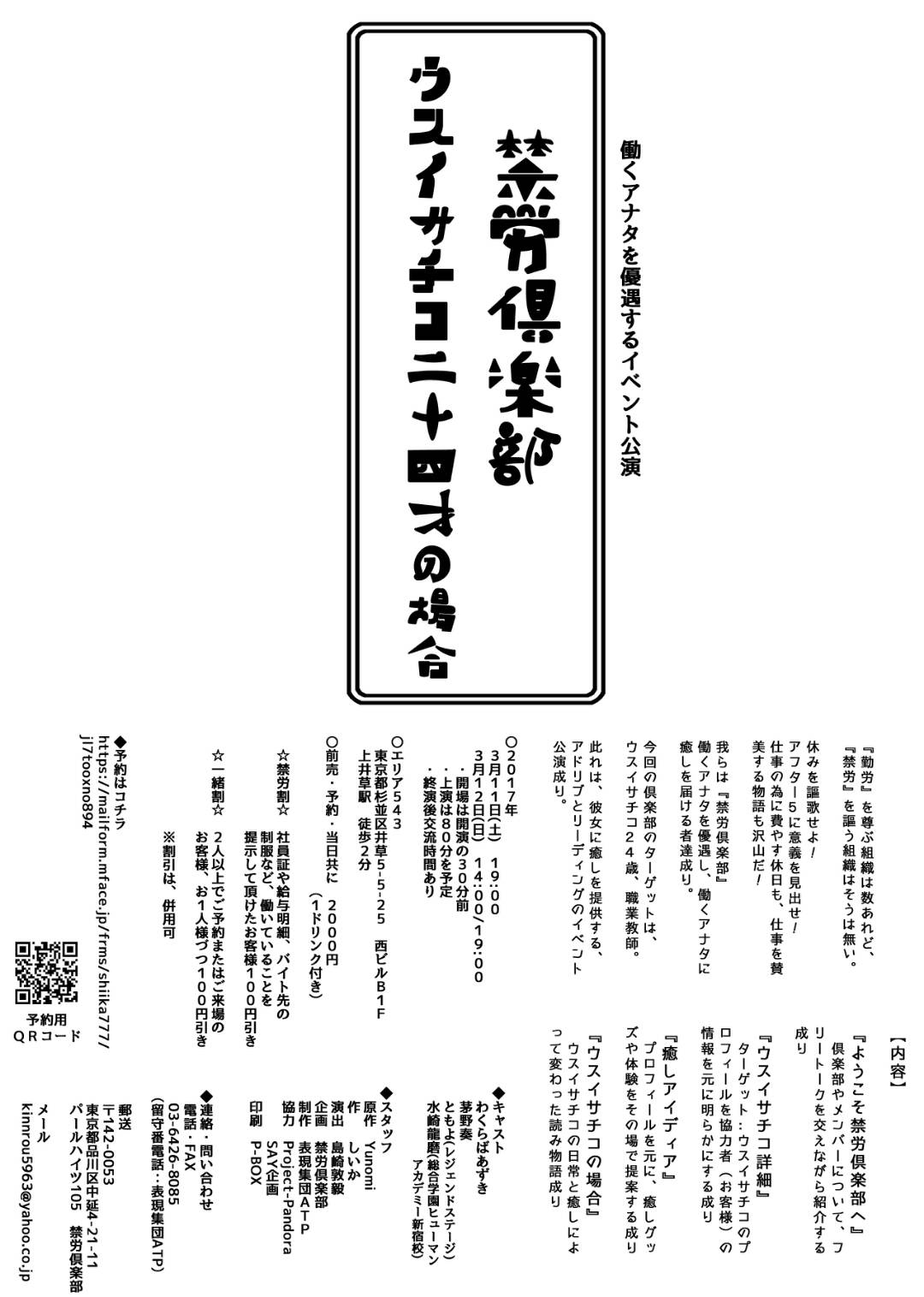 03-6426-8085(留守番電話:表現集団ATP)