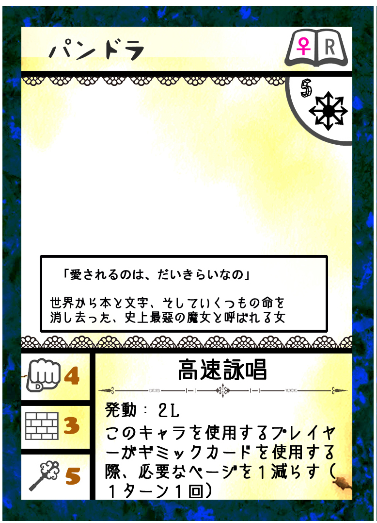 キャラクターの基礎ステータスは、魔女パンドラとほぼ互角。